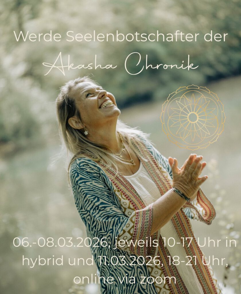 im März 2026 gibt es wieder die Möglichkeit, die Verbindung zur Akasha Chronik, zu erlernen und als Seelenbotschafter der Akasha Chronik dir selbst und der Welt zu dienen. Und ja, diese Befähigung ist einzigartig und ganz besonders. Und ja, sie wird dein Ego herausfordern und zum Rebellieren bringen. Gut so. Denn ja, sie wird dich auch wachsen lassen, reifen lassen, authentisch werden lassen. Und ein tiefes Gefühl des Friedens und der Freude, in dir zum Erblühen bringen.